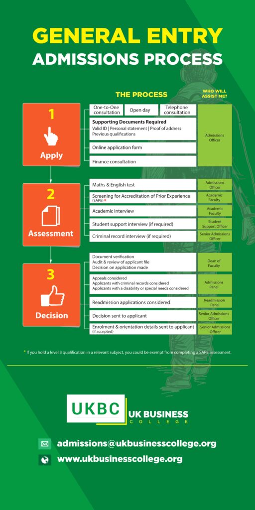 An admissions appointment will be available to every applicant who applies to study at UK Business College. This is an exciting occasion as it will give you the chance to learn more about the course, get to know our staff and ask our team any questions you may have.